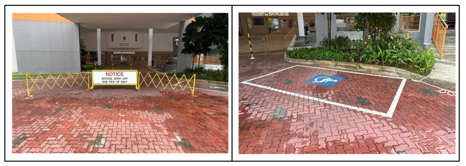 It is mandatory for students to observe road safety. They include the use of footways, observation of traffic flow and abiding traffic rules at road crossings. Pay attention to the road junctions and surroundings. For safety, parents who drive their child to school should drop their child at the School Designated drop off point. Parking and waiting are prohibited in areas marked for handicapped access,